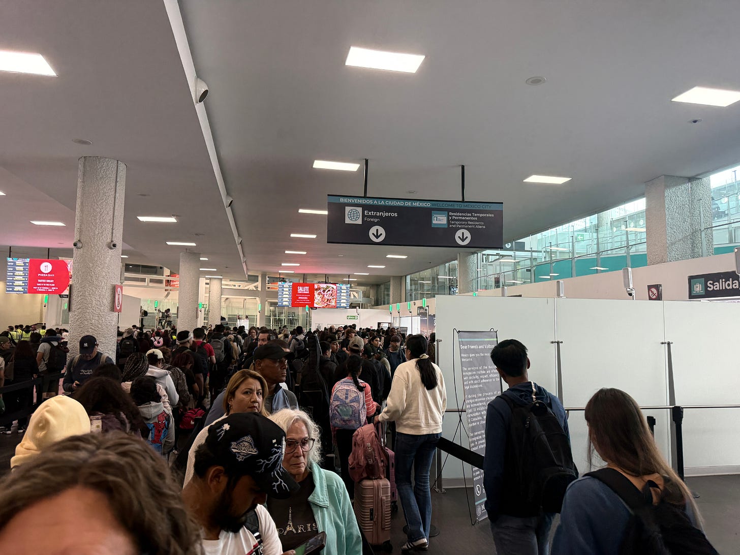 We waited in the international line for about 20 minutes, though I kept looking at the signs and thinking that our residency cards would let us use the Mexican side of the room where, again, there was no line. After snaking our way through a few turns of the queue, I finally asked someone. And sure enough, our Mexico residency cards allowed us to skip the long international line in customs, something we'd never had to even think about flying into Terminal 1. There was some confusion around whether we should use the automated kiosks or speak to an agent, but there was no line anyway, and we did the latter without any issues.