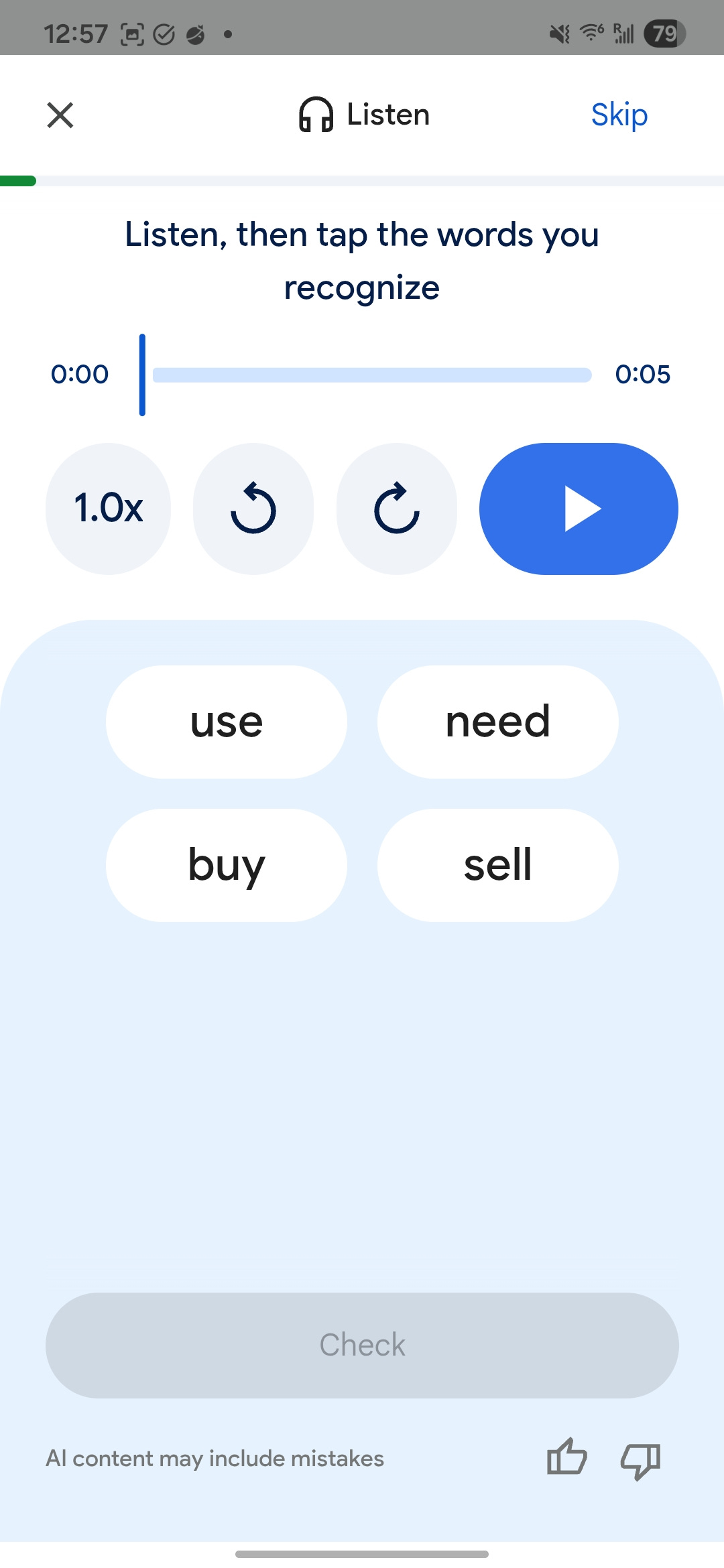 Practice is a way you can use AI in Google Translate for listening and speaking exercises, to build these skills.