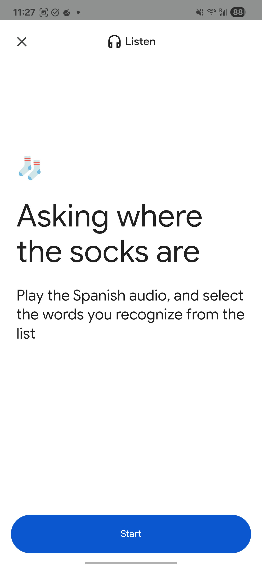 Iād like an option to listen without seeing the English words on the screen. Iād rather hear the Spanish sentences without any clues.