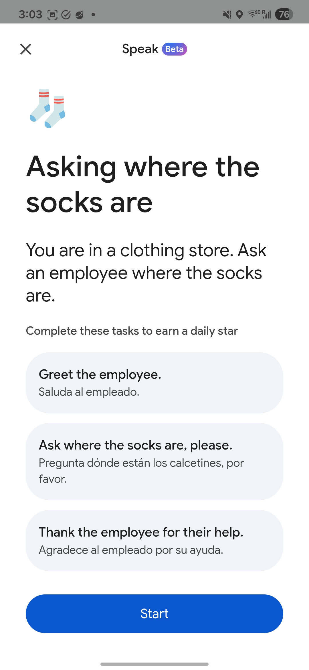 For example, you can practice a shopping skill, like asking where to find socks in a store.